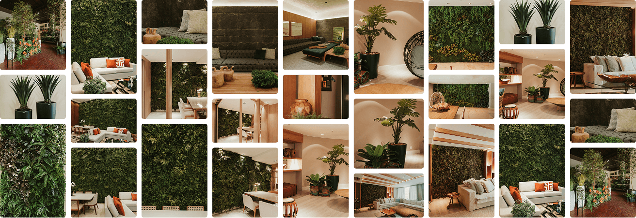 Criamos ambientes encantadores com plantas naturais,